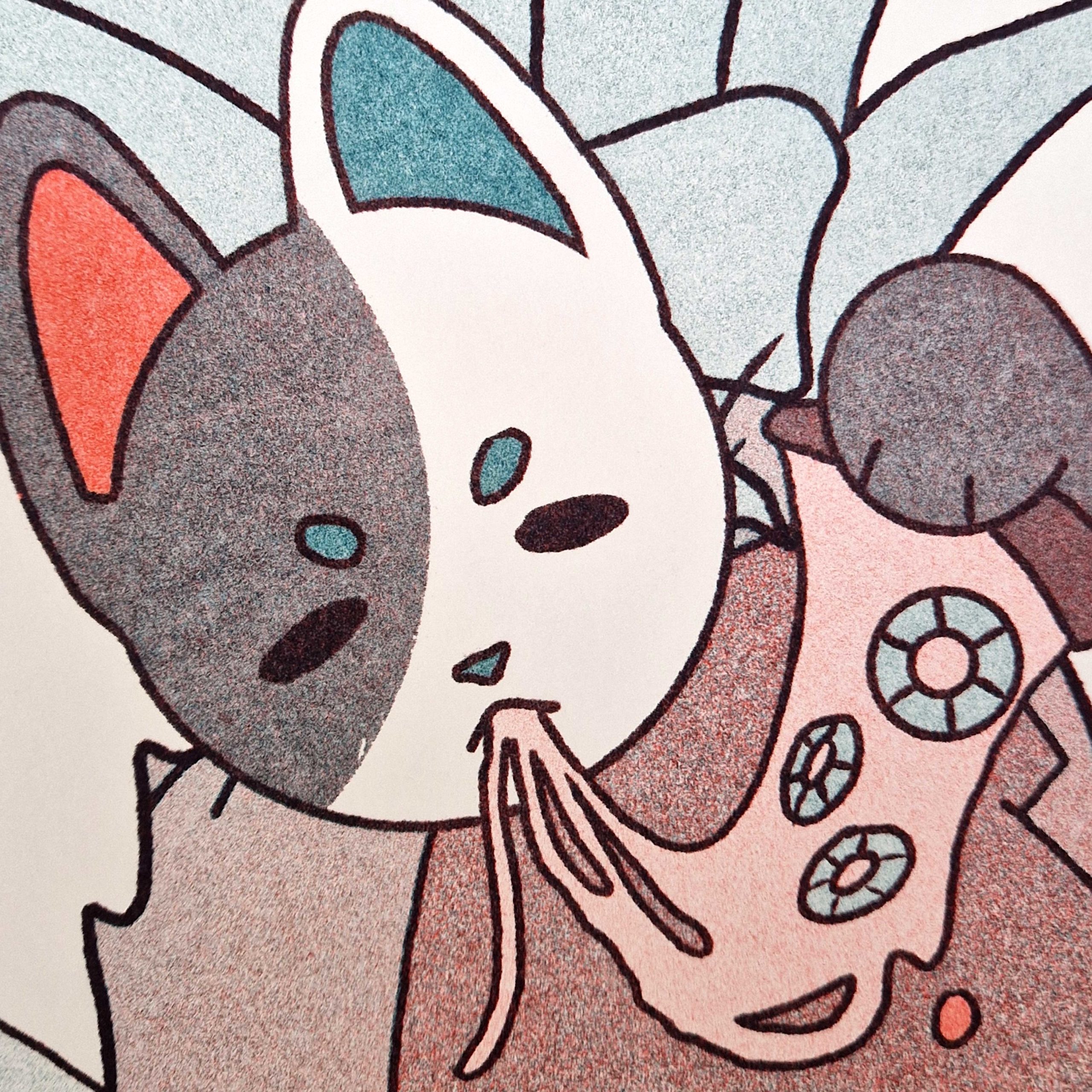 Tirage A4 pour l’exposition du Volume 3 de la Truite, imprimé en deux couleurs Red et Teal.
